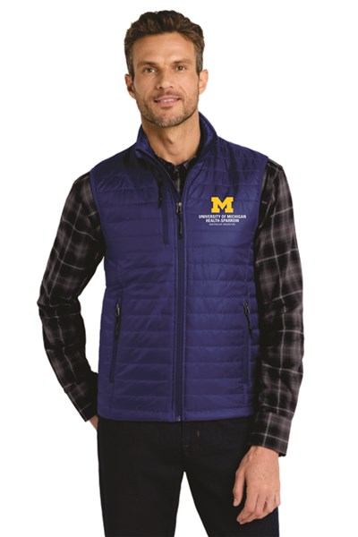 Staying warm while on the go has never been easier with our Packable Puffy Vests. Thanks to a water-repellent fabric coating and finish, you’ll remain comfortable no matter where your day takes you. 100% polyester shell and lining 2.4-ounce, 100% polyfill insulation Reverse coil zippers Zippered chest pocket Front zippered pockets Adjustable locking drawcord at hem Port Pocket™ for decoration access Insulation method: 2.4-ounce polyfill Water protection method: PU coating and water-repellent finish Dyed-to-match drawstring carrying pouch included